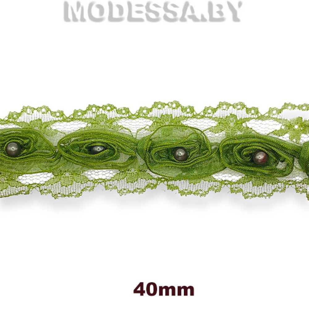 2168-А Кружево синтетич. 40мм Ц:Зелёный