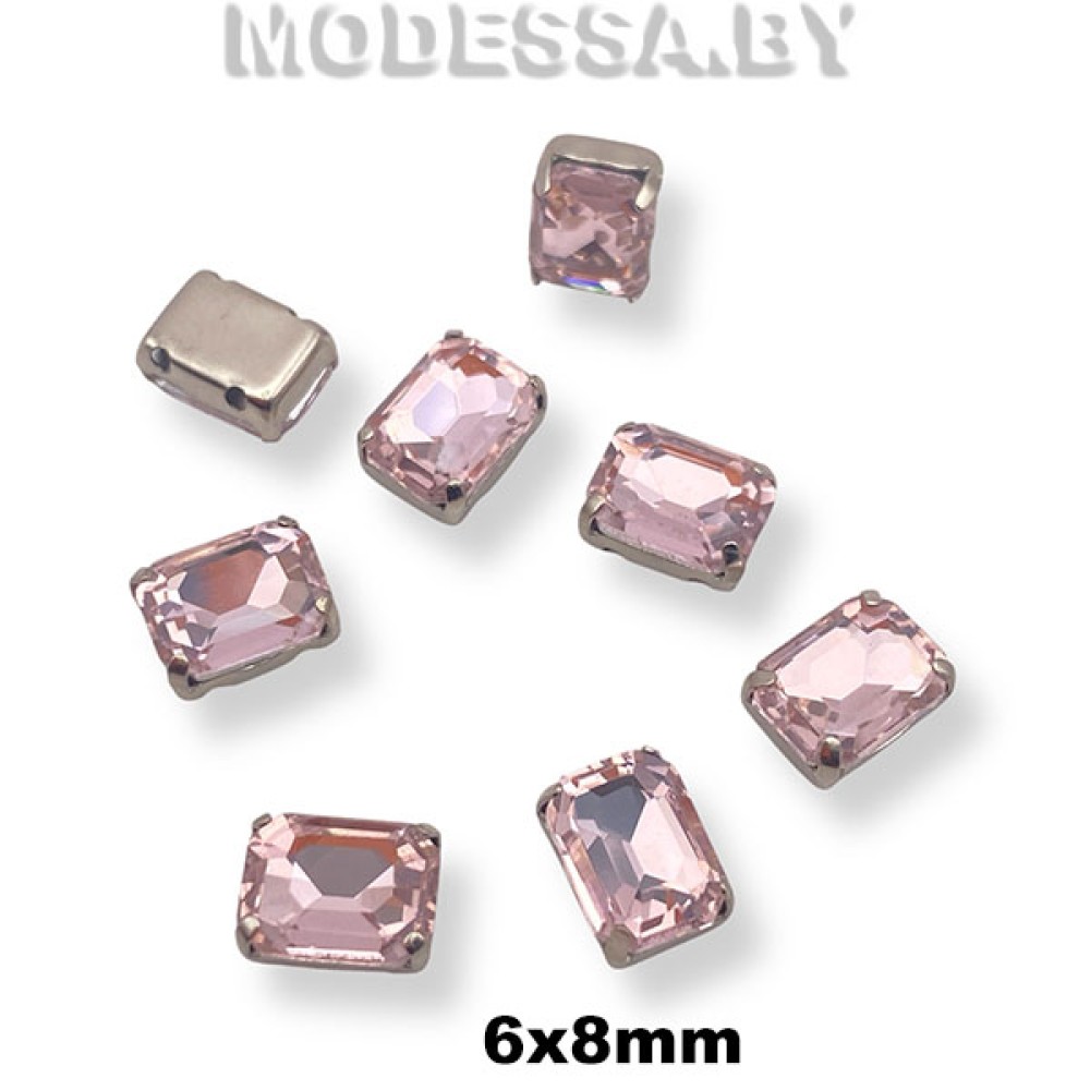 Стразы стеклянные в металлической оправе прямоугольной формы, артикул: 2178. Размер 6х8мм. Пришивные стразы из стекла прекрасно подойдут для декора одежды и аксессуаров. Благодаря своей яркости и блеску, они добавят изделиям изысканности и элегантности. Крепятся к изделию путём пришивания металлической цапы, в которую вставлена страза.