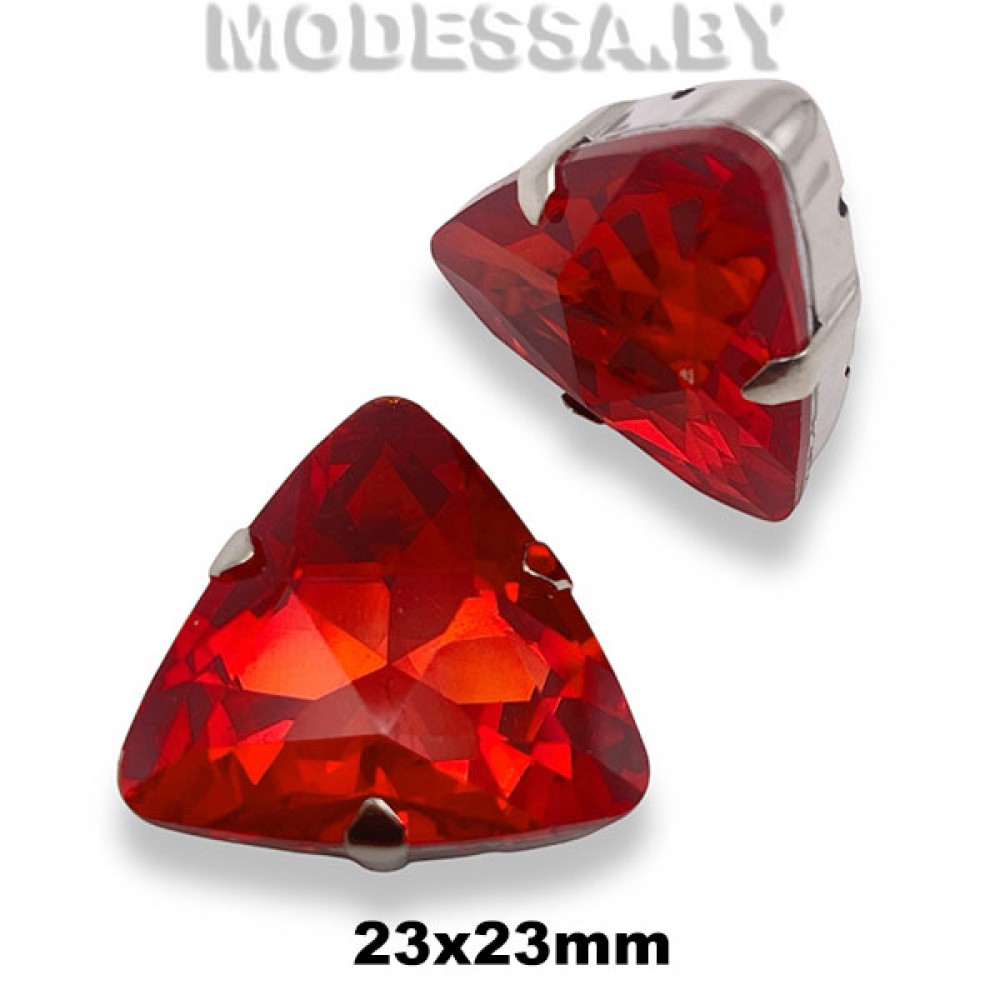 Стразы стеклянные в металлической оправе треугольной формы, артикул: 2233. Размер 23х23мм. Пришивные стразы из стекла прекрасно подойдут для декора одежды и аксессуаров. Благодаря своей яркости и блеску, они добавят изделиям изысканности и элегантности. Крепятся к изделию путём пришивания металлической цапы, в которую вставлена страза.