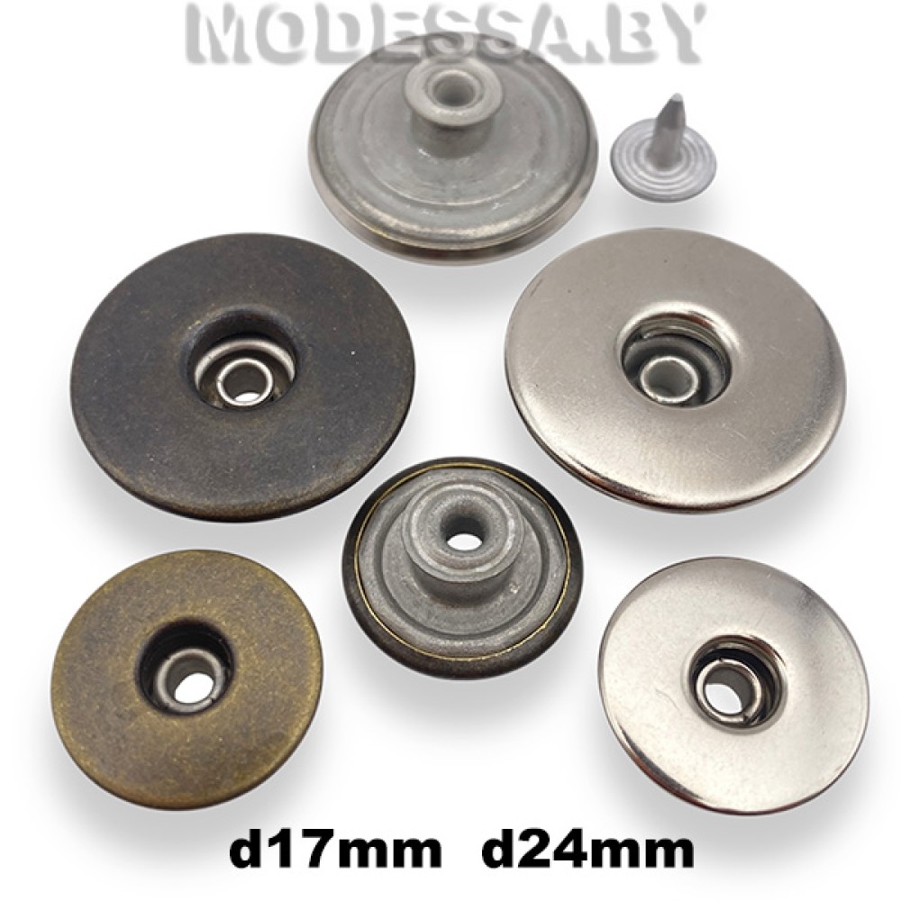 Заклёпка-пуговица металлическая, артикул: 2302125 / 1702110, на плавающей ножке. Диаметр 24мм;17мм. Джинсовые пуговицы используются при изготовлении одежды и других изделий из джинсовой ткани. Данная пуговица будет эффектно смотреться как на одежде, так и на рюкзаке, сумке.