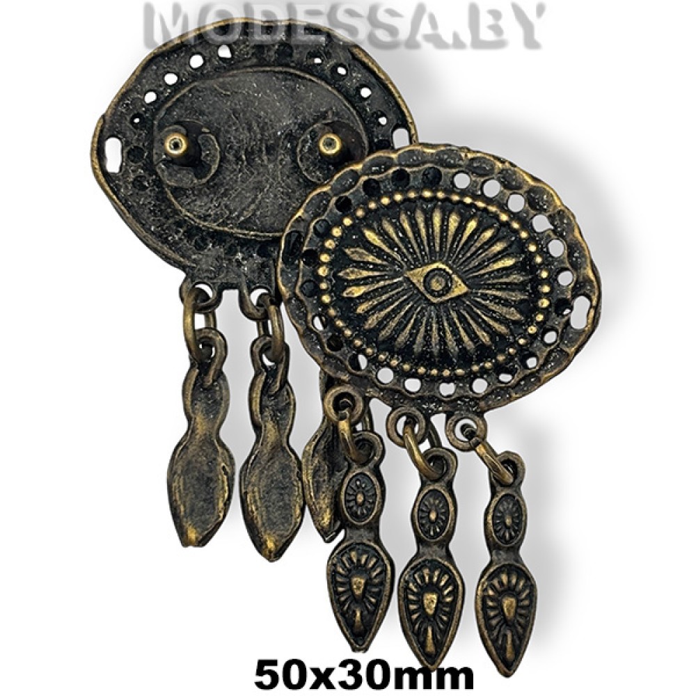 Украшение металлическое на прокол, артикул: 2304. Размер 50х30мм. Используется как декоративный элемент для украшения одежды, кожгалантерейных изделий, головных уборов, обуви и др.