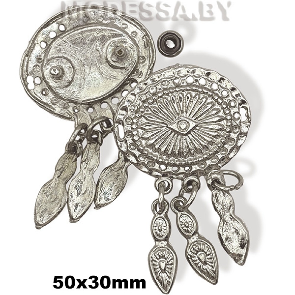 Украшение металлическое на прокол, артикул: 2304. Размер 50х30мм. Используется как декоративный элемент для украшения одежды, кожгалантерейных изделий, головных уборов, обуви и др.