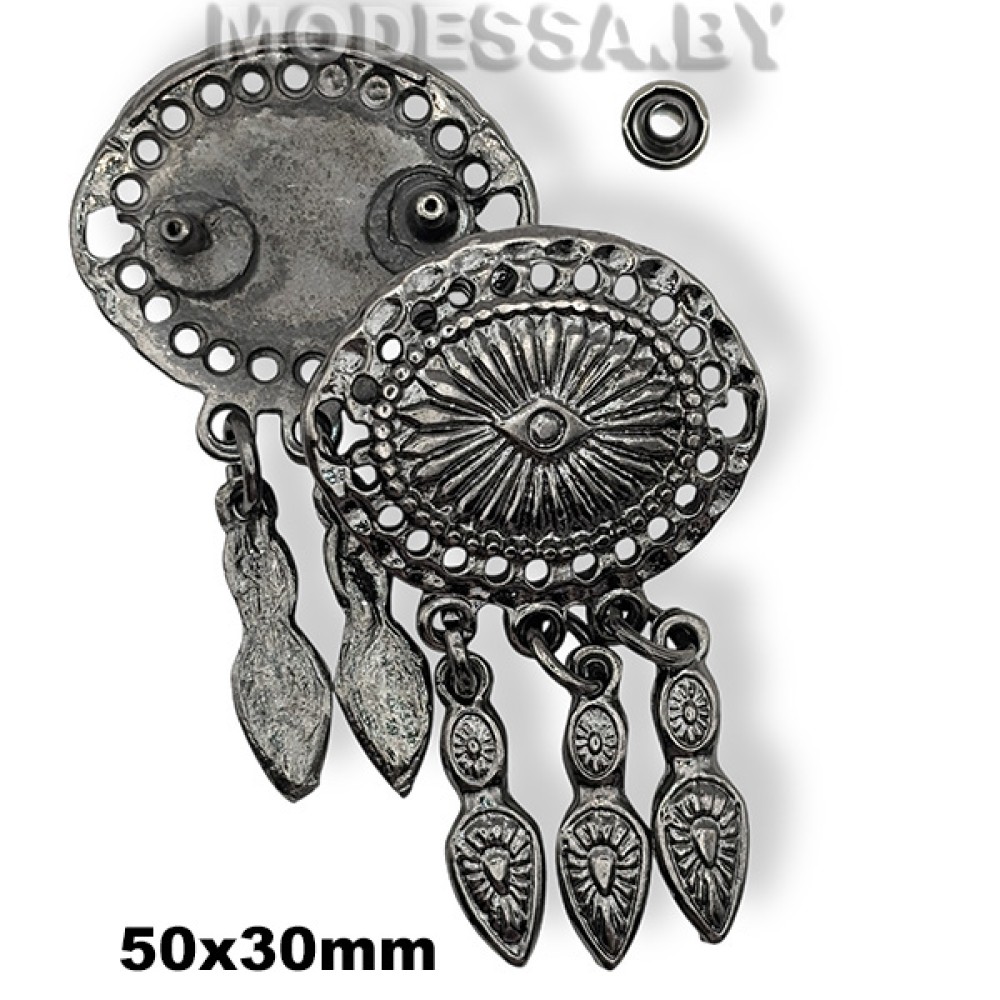 Украшение металлическое на прокол, артикул: 2304. Размер 50х30мм. Используется как декоративный элемент для украшения одежды, кожгалантерейных изделий, головных уборов, обуви и др.
