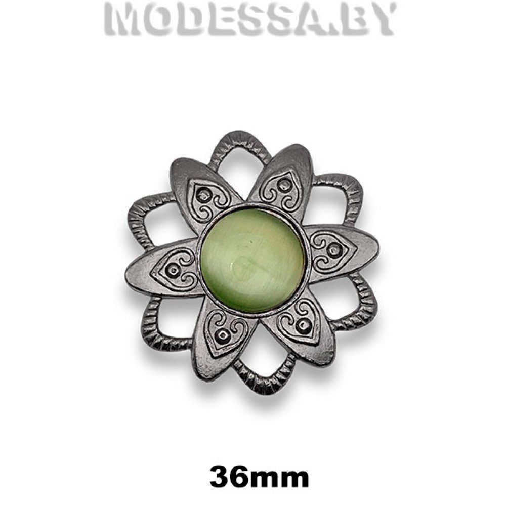 2624 СКВ Украшение 36х36мм Ц:Чёрный никель/Салатовый