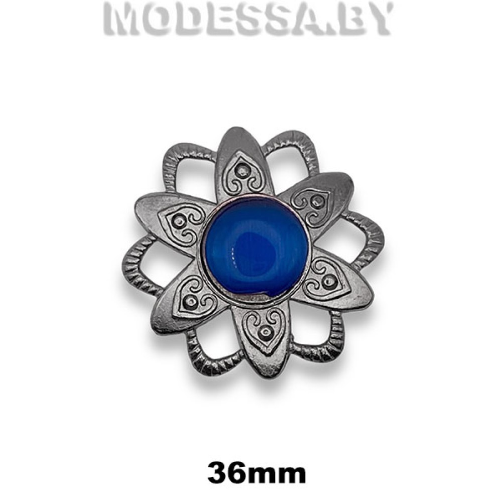 2624 СКВ Украшение металлическое 36х36мм Ц:Чёрный никель/Синий