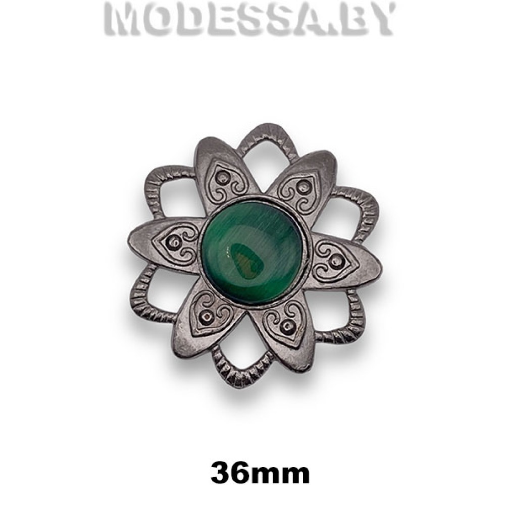 2624 СКВ Украшение 36х36мм Ц:Чёрный никель/Т.Зелёный