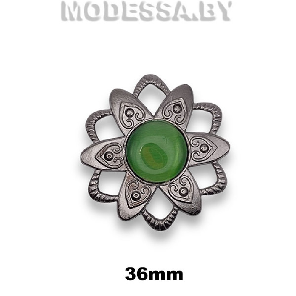 2624 СКВ Украшение 36х36мм Ц:Чёрный никель/Зелёный