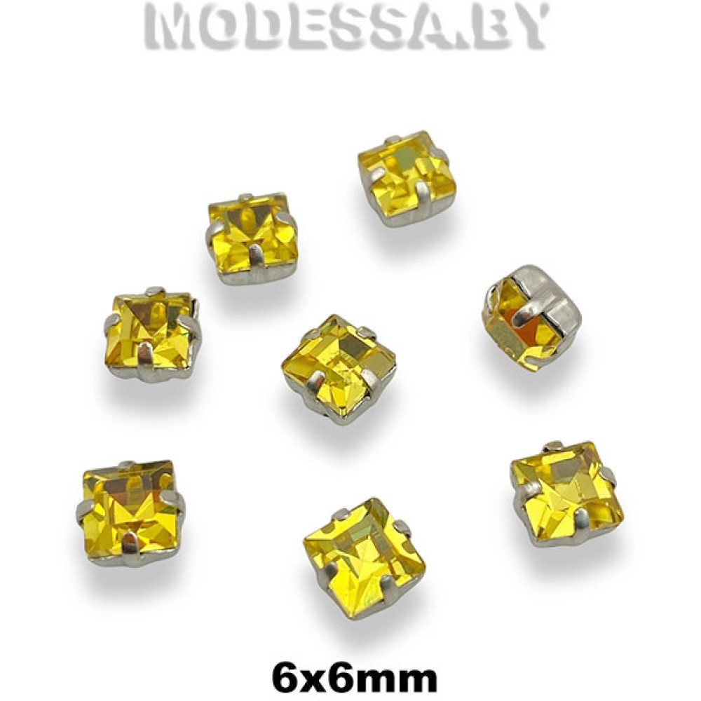 2641 6х6мм стразы стекл. в оправе Ц:Жёлтый