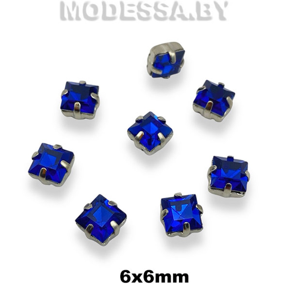 Стразы стеклянные в металлической оправе квадратной формы, артикул: 2641. Размер 6х6мм. Пришивные стразы из стекла прекрасно подойдут для декора одежды и аксессуаров. Благодаря своей яркости и блеску, они добавят изделиям изысканности и элегантности. Крепятся к изделию путём пришивания металлической цапы, в которую вставлена страза.