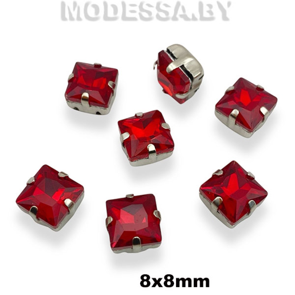 Стразы стеклянные в металлической оправе квадратной формы, артикул: 2641. Размер 8х8мм. Пришивные стразы из стекла прекрасно подойдут для декора одежды и аксессуаров. Благодаря своей яркости и блеску, они добавят изделиям изысканности и элегантности. Крепятся к изделию путём пришивания металлической цапы, в которую вставлена страза.