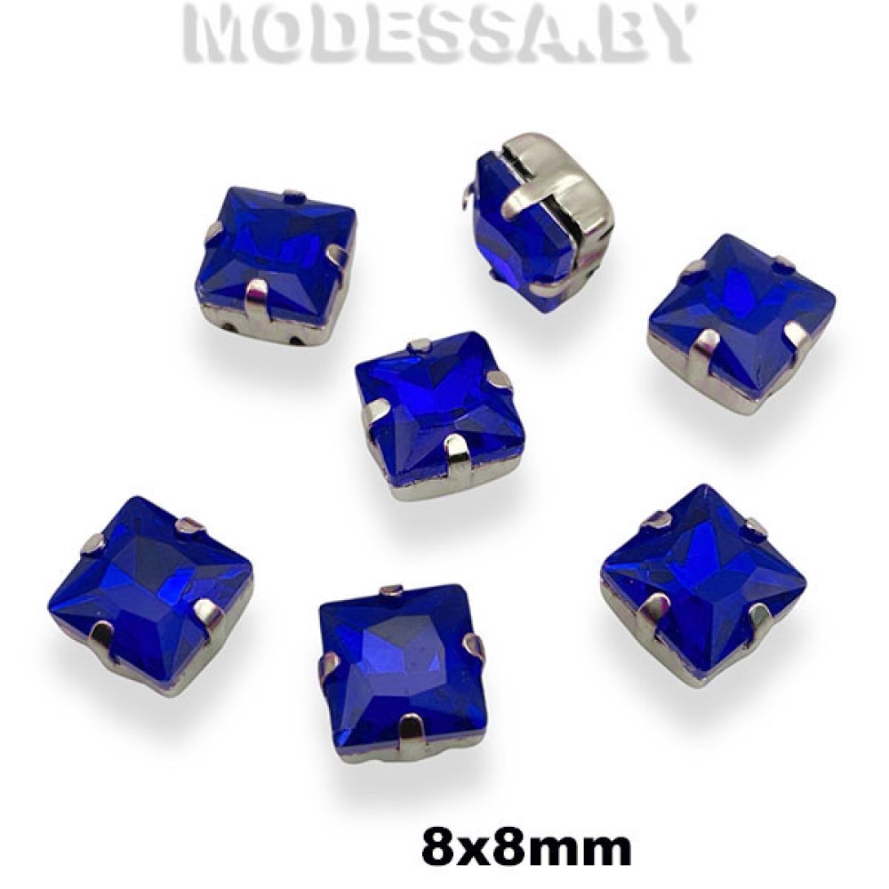 Стразы стеклянные в металлической оправе квадратной формы, артикул: 2641. Размер 8х8мм. Пришивные стразы из стекла прекрасно подойдут для декора одежды и аксессуаров. Благодаря своей яркости и блеску, они добавят изделиям изысканности и элегантности. Крепятся к изделию путём пришивания металлической цапы, в которую вставлена страза.