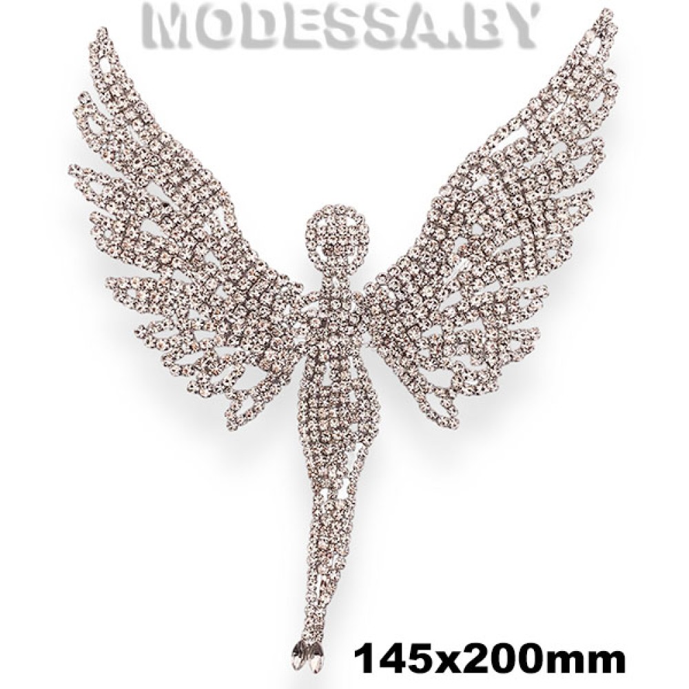 Украшение пришивное со стразами "Ангел", артикул: 2651JRD. Размер 145х120мм. Используется для украшения одежды, текстильных изделий и сумок. Легко пришивается и делает вещь более привлекательной.