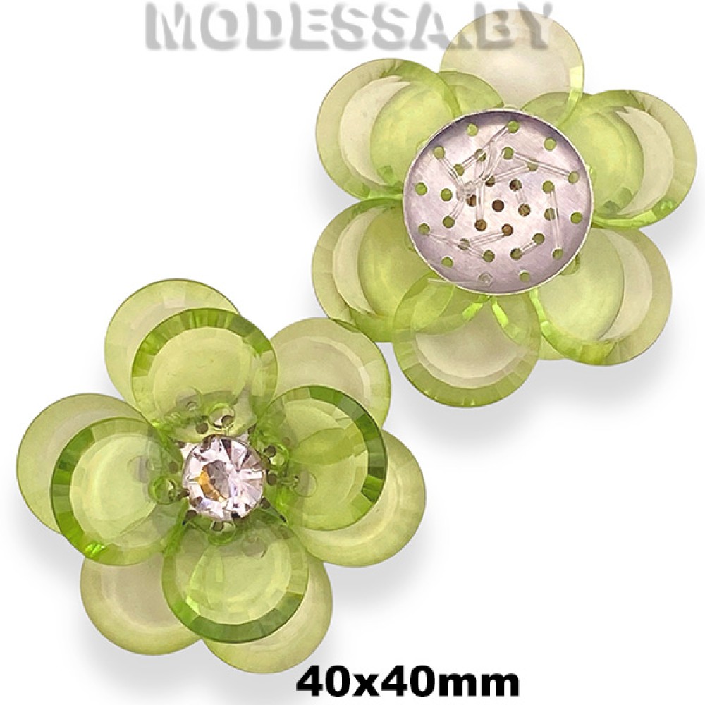 Украшение пластмассовое пришивное "Цветок", артикул: 27070. Размер 40х40мм. Используется для украшения одежды, обуви, сумок, для декорирования предметов интерьера, творческих поделок и др.