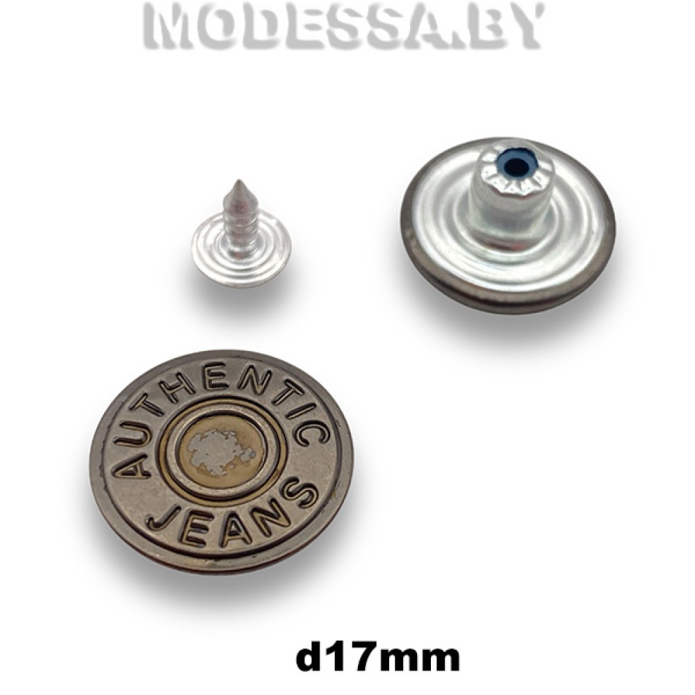Заклёпка-пуговица металлическая "Jeans Authentic", артикул: 27889.3, на фиксированной ножке. Диаметр 17мм. Джинсовые пуговицы используются при изготовлении одежды и других изделий из джинсовой ткани. Данная пуговица будет эффектно смотреться как на одежде, так и на рюкзаке, сумке.