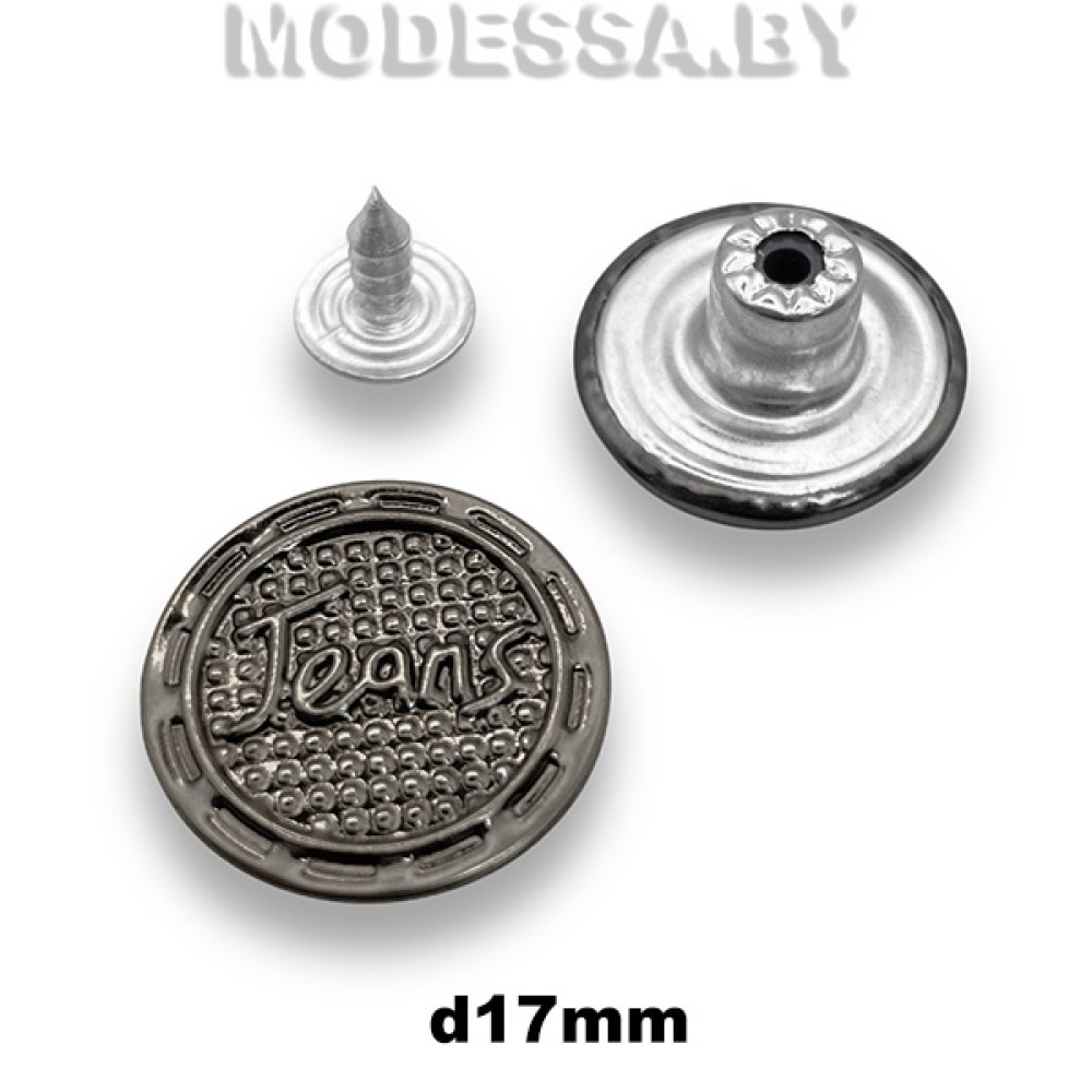 Заклёпка-пуговица металлическая, на фиксированной ножке, артикул: 27889.4. Диаметр 17мм. Джинсовые пуговицы используются при изготовлении одежды и других изделий из джинсовой ткани. Данная пуговица будет эффектно смотреться как на джинсовой одежде, так и на рюкзаке, сумке.