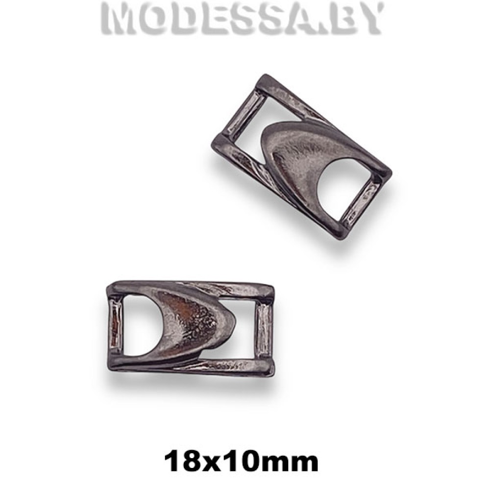 Пришивная декоративная пряжка, артикул: 2837. Размер 18х10мм. Ширина отверстия для протяжки 5мм. Может применяться как декор для одежды, кожгалантерейных изделий, головных уборов, обуви, сумок и др.
