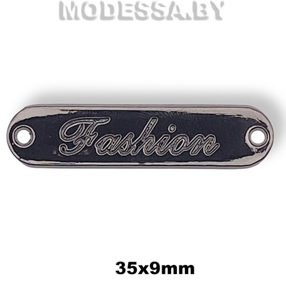 Бирка металлическая «Fashion», артикул: 2981 Р. Размер 35х9мм. С помощью бирки можно добавить уникальности изделию или украсить вещь, будь то одежда, обувь, сумка или рюкзак. Легко пришивается с помощью отверстий к любому предмету одежды и делают его более привлекательным и стильным.