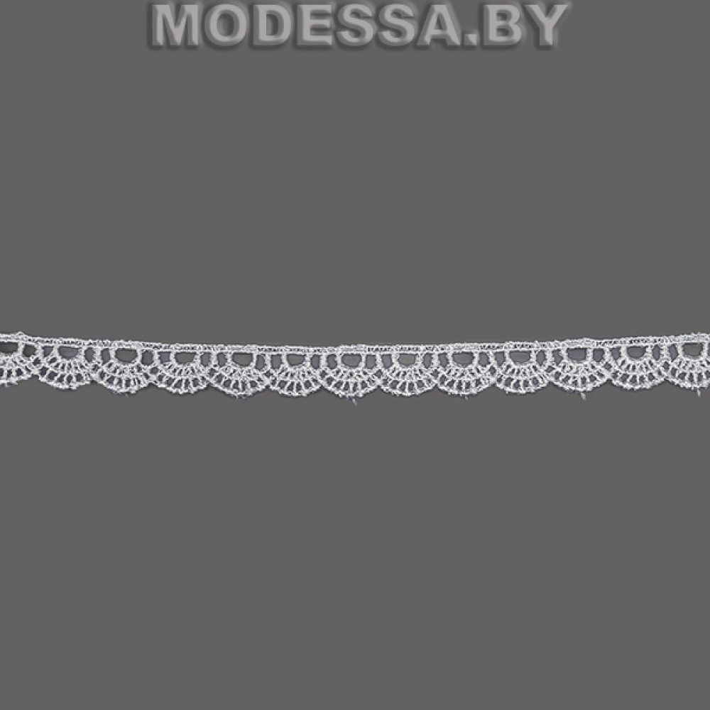 Кружево синтетическое гипюр, артикул: 304 W. Ширина 12мм. Благодаря жесткости, гипюр хорошо держит форму. Применяется при пошиве одежды, белья и домашнего текстиля, а также используют для декора других материалов.