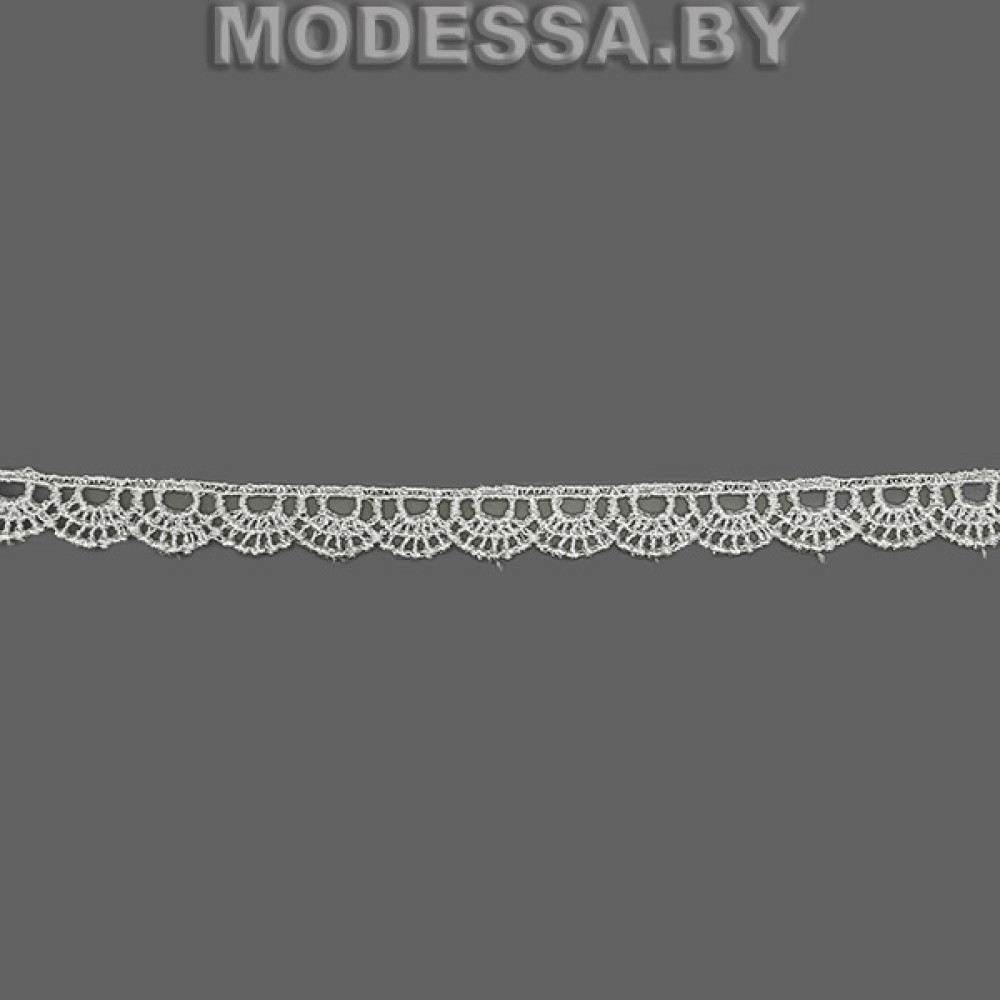 Кружево синтетическое гипюр, артикул: 304 W. Ширина 12мм. Благодаря жесткости, гипюр хорошо держит форму. Применяется при пошиве одежды, белья и домашнего текстиля, а также используют для декора других материалов.