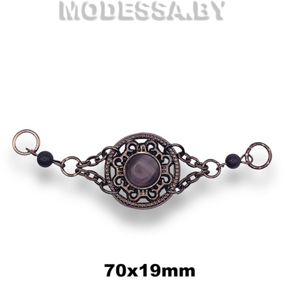 Пришивное украшение металлическое, артикул: 3214 СКВ. Размер 70х19мм. Ширина отверстия для протяжки 5мм. Модель украшения идеально подходит для декорирования горловины блузок, рубашек или платьев, а также для декоративного оформления сумок, аксессуаров и др.