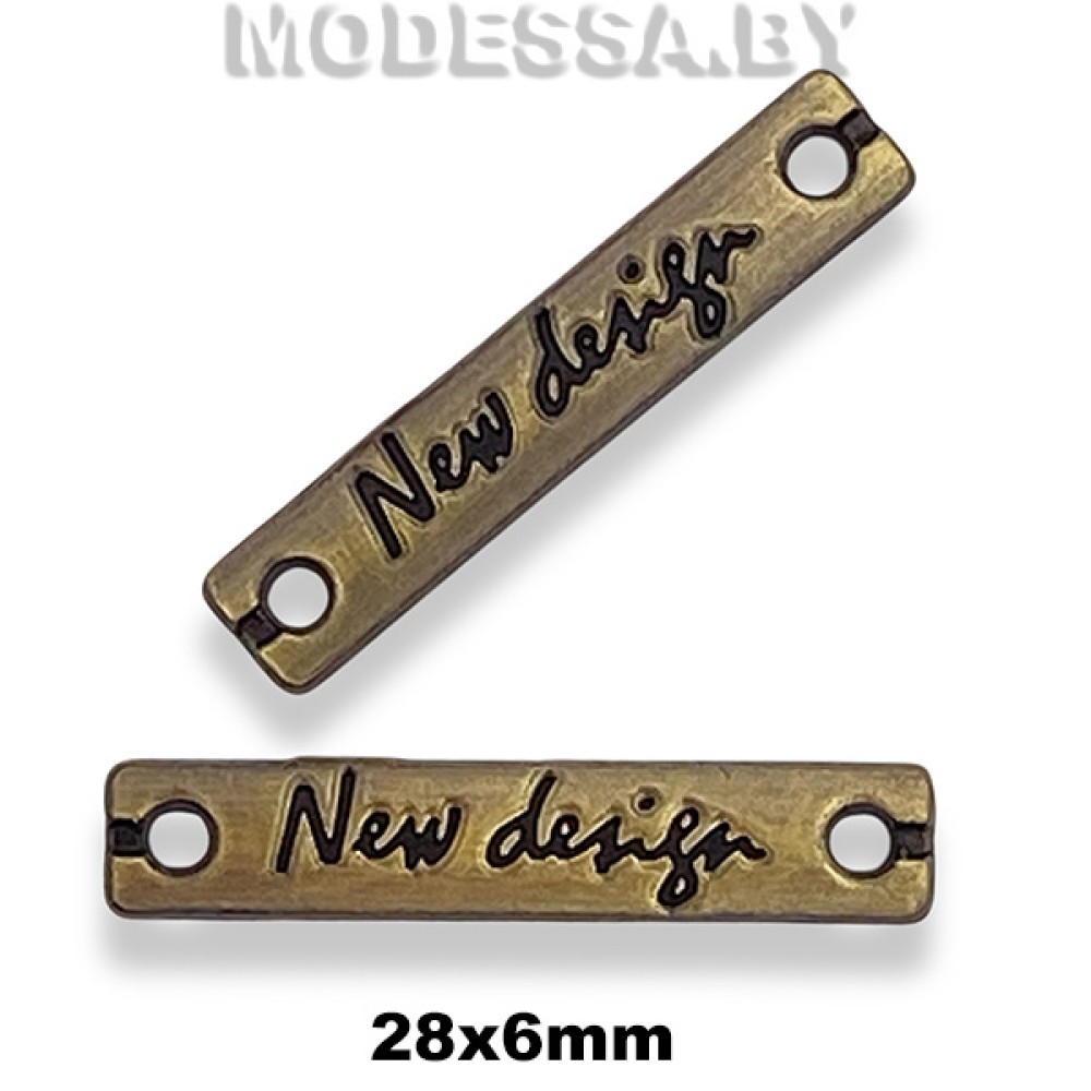 Бирка металлическая "New design", артикул: 3253. Размер 28х6мм. С помощью бирки можно добавить уникальности изделию или украсить вещь, будь то одежда, обувь, сумка или рюкзак. Легко пришивается с помощью отверстий к любому предмету одежды и делают его более привлекательным и стильным.
