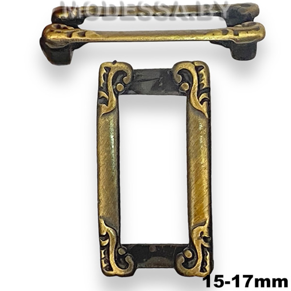 Рамка металлическая без перекладины, неразъёмная, артикул: 3692. Размер 42х23мм. Ширина отверстия для протяжки 15мм. Применяется в качестве соединительного элемента при пошиве сумок, рюкзаков, ремней, одежды и других аксессуаров.