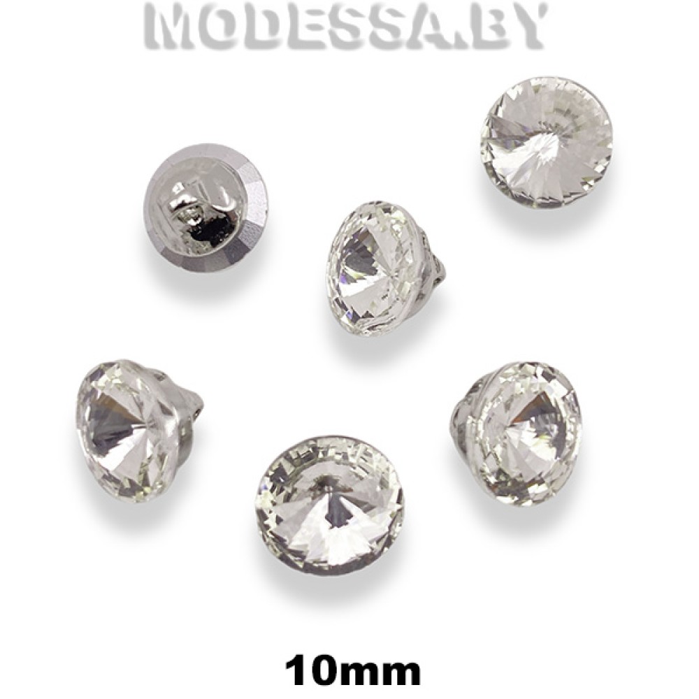 Пуговица пришивная металлическая декоративная со вставками из страз кристального цвета, артикул: 3710-JRB-A, на ножке, диаметром 10мм. Используется в качестве застёжек в производстве одежды, головных уборов, аксессуаров, а также в декоративных целях для украшения различных изделий и декора.