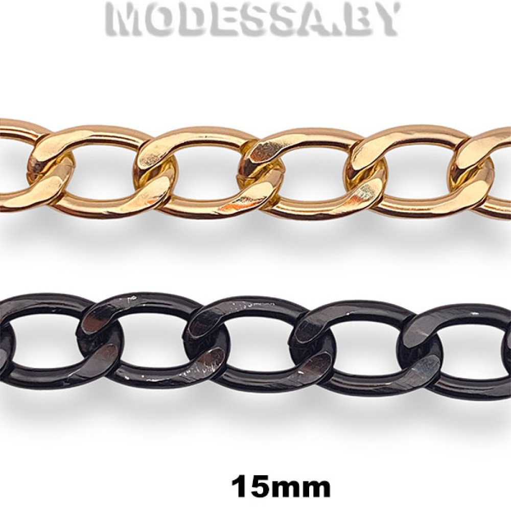 Цепочка металлическая, артикул: 3,5 NK. Размер звена 24х15мм. Используется для рукоделия, а также декорирования одежды, сумок. Звенья цепи разъёмные, крепится к сумке с помощью карабинов.