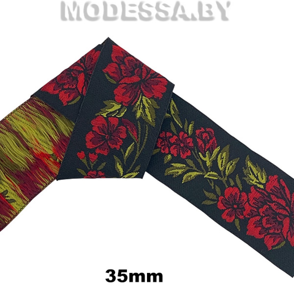 Жаккардовая лента — это тип декоративной ленты, известной своими детализированными тканными узорами, созданными с помощью жаккардовой техники ткачества. Плотная лента используется для декоративной отделки одежды, аксессуаров и др. Арткул: 4010. Ширина 35мм.