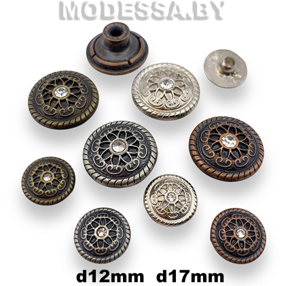 Заклёпки металлические, артикул: D33030; D33015. Диаметр 17мм; 12мм. Используются при изготовлении одежды и других изделий из джинсовой ткани и др. Будут эффектно смотреться как на джинсовой одежде, так и на рюкзаке, сумке.