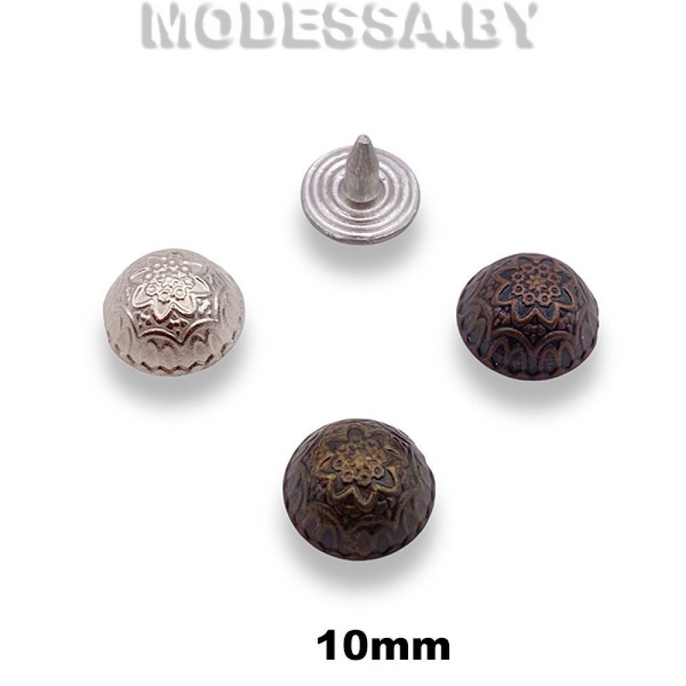 Заклёпка металлическая (хольнитен), артикул: 1000608. Диаметр 10мм. Металлическая заклепка или хольнитен — это не просто декоративный элемент, а функциональная деталь, придающая изделиям дополнительную прочность. Хольнитены используются для укрепления швов на одежде, особенно на джинсах, куртках, сумках и рюкзаках и т. д.
