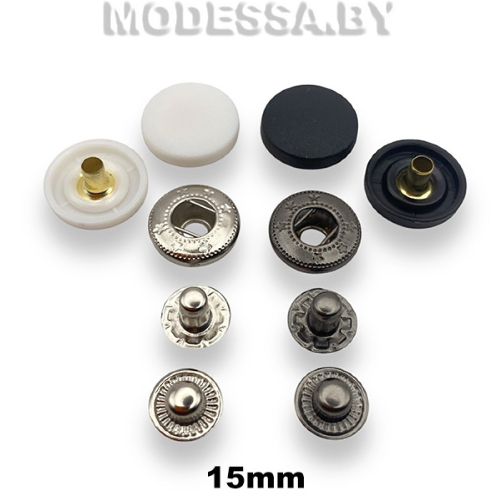 Кнопка металлическая с пластиковым матовым верхом "Альфа", артикул: 27888.15. Диаметр 15мм. Кнопки для одежды – часто применяемый вид застёжки. Их используют для курток, рубашек, платьев, а также сумок и т. д. Преимущество кнопки в быстром и легком расстегивании. Кнопка состоит из 4-х частей. Установка застёжки кнопки на одежду производится с помощью пресса и специальных насадок. Не рекомендуется устанавливать кнопки на очень тонких и непрочных тканях.