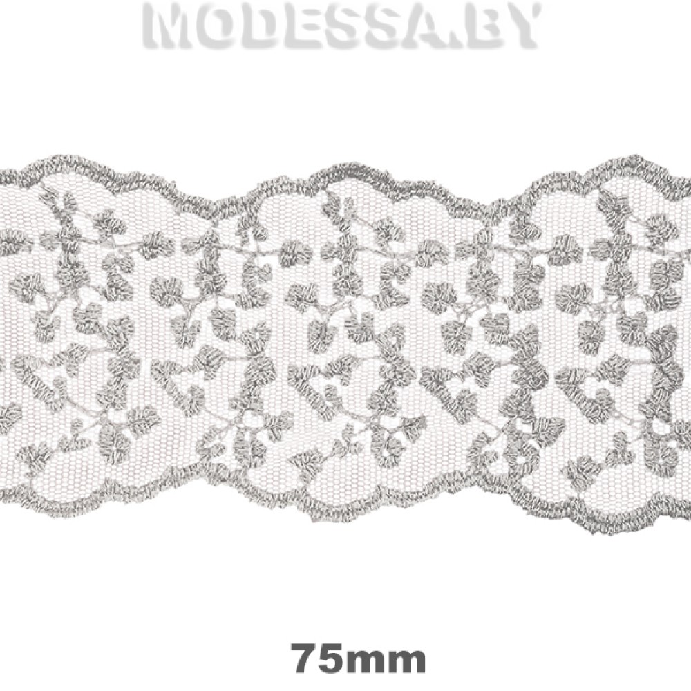 Вышивка на сетке с люрексом, артикул: 41266.17. Ширина 75мм. Применяется в пошиве нижнего белья, свадебных и вечерних платьев, а также для декора одежды, домашнего текстиля и др.