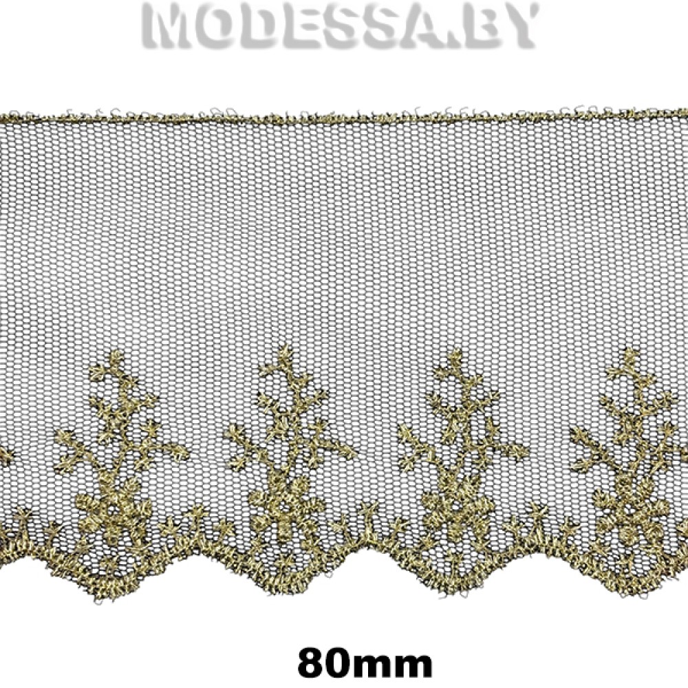 Вышивка на сетке с люрексом, артикул: 41266.18. Ширина 80мм. Применяется в пошиве нижнего белья, свадебных и вечерних платьев, а также для декора одежды, домашнего текстиля и др.