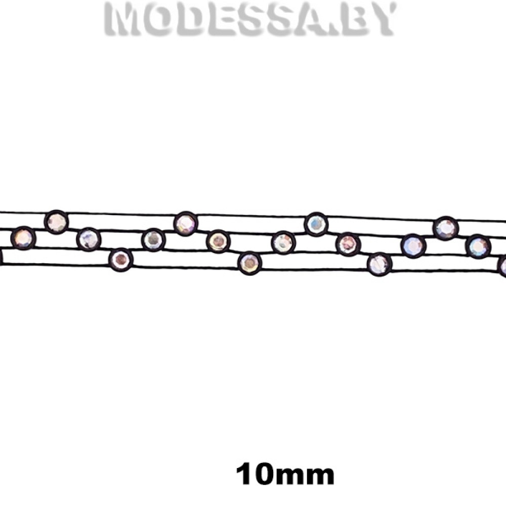 Технические характеристики 415 RS Тесьма со стразами 10мм Ц:Черный АВ