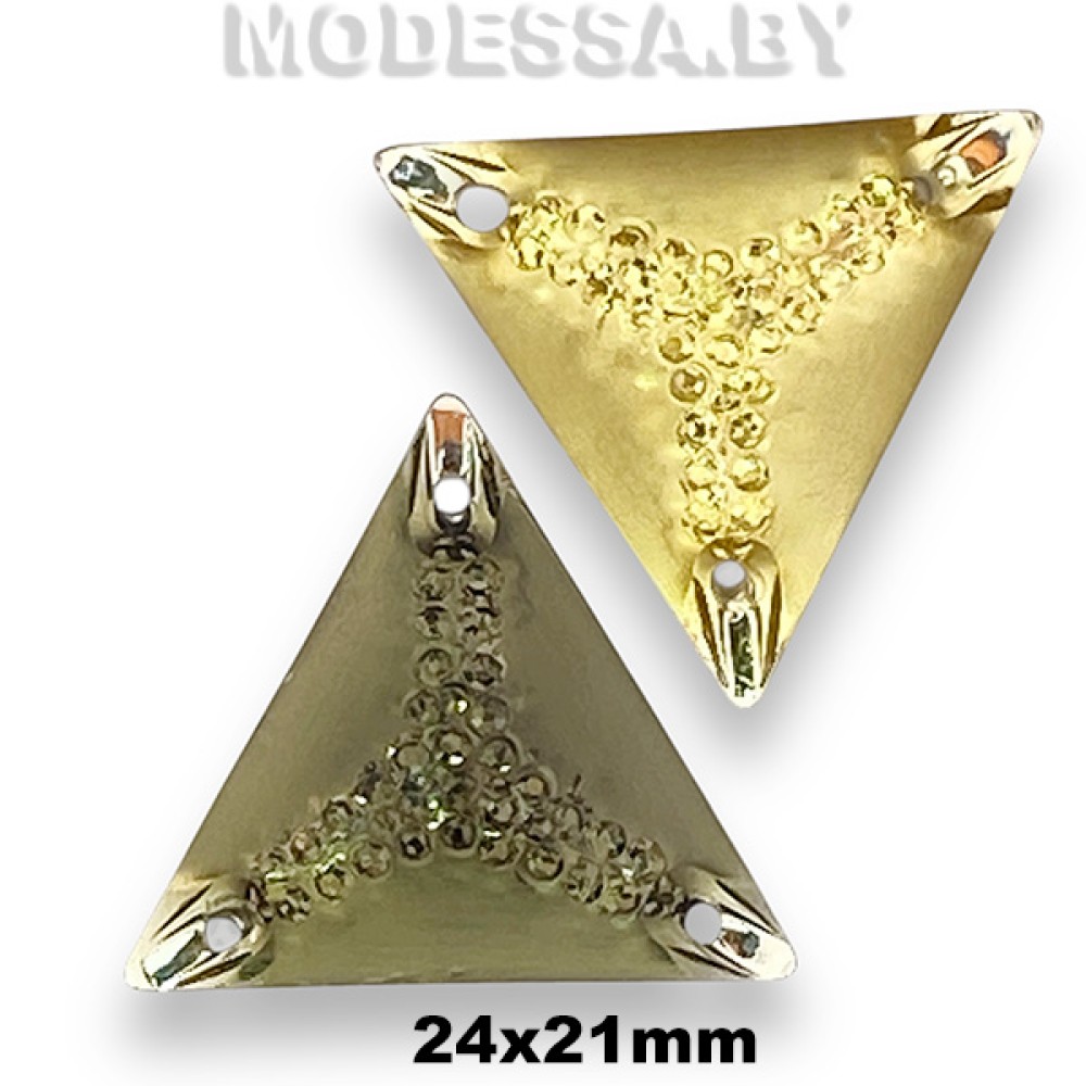 Украшение пластмассовое пришивное треугольной формы, артикул: 6270 TR 22. Размер 24х21мм. Украшение с двумя отверстиями и плоским дном используется для украшения одежды, обуви, сумок, для декорирования предметов интерьера, творческих поделок и др.