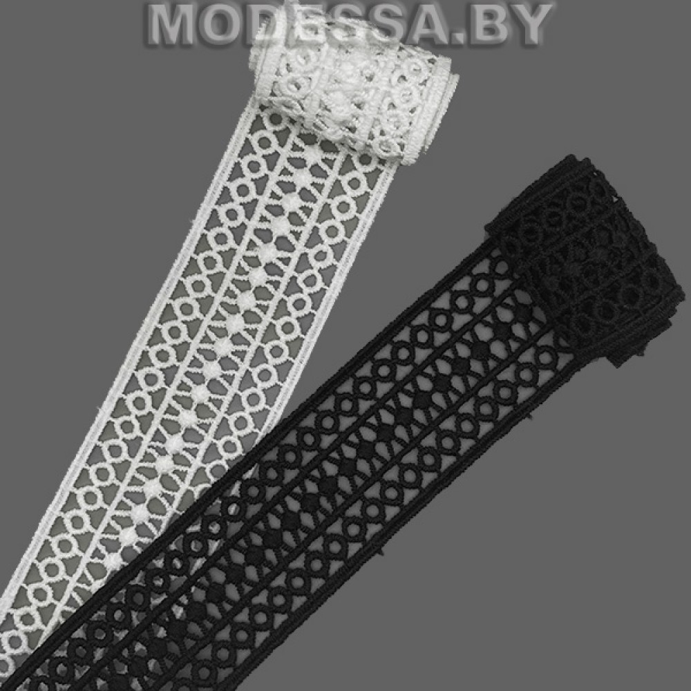 Кружево синтетическое гипюр, артикул: 41844.2. Ширина 40мм. Благодаря жесткости, гипюр хорошо держит форму. Применяется при пошиве одежды, белья и домашнего текстиля, а также используют для декора других материалов.