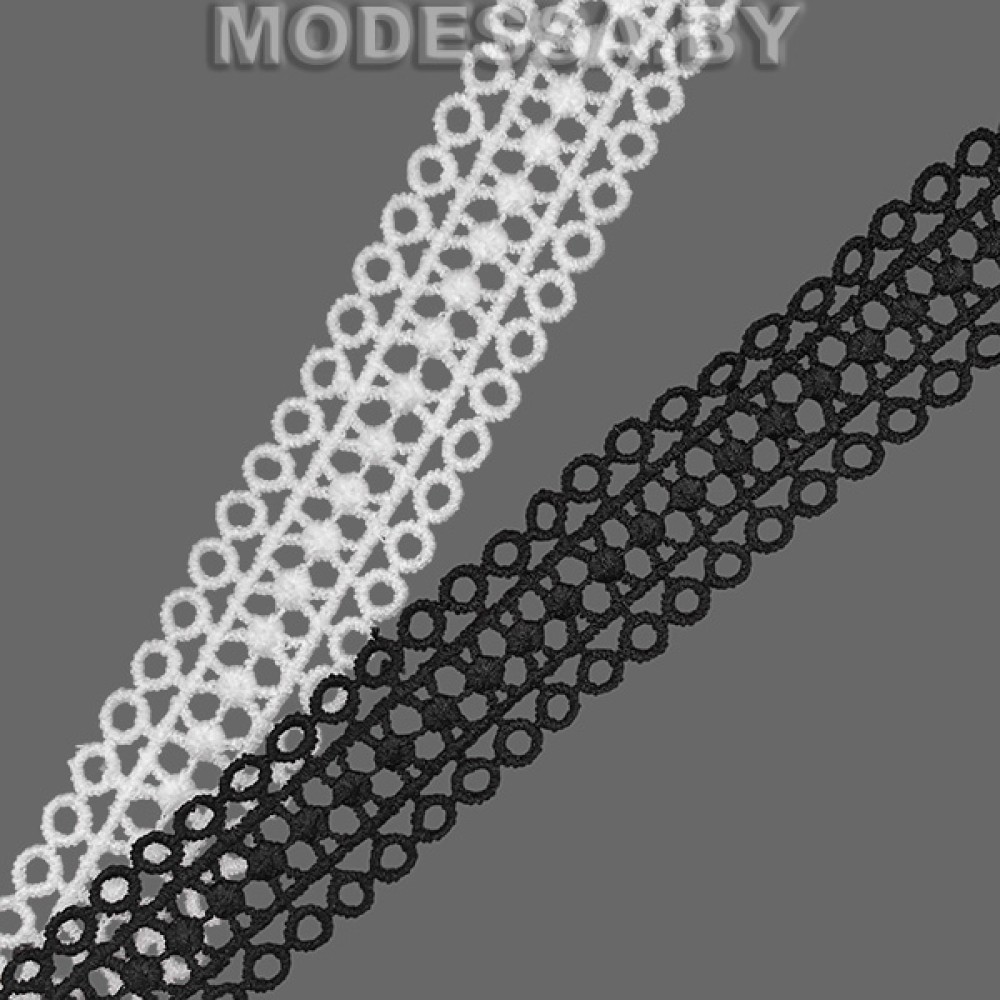 Кружево синтетическое гипюр, артикул: 41844.4. Ширина 25мм. Благодаря жесткости, гипюр хорошо держит форму. Применяется при пошиве одежды, белья и домашнего текстиля, а также используют для декора других материалов.