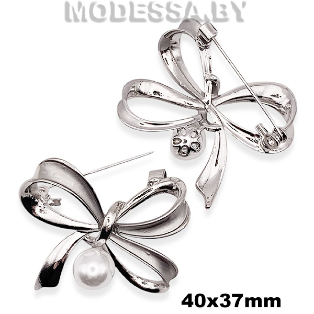 Брошь металлическая декоративная "Бант", артикул: 4233.2. Размер 40х37мм. Используется не только в качестве украшения, но и может выполнять функцию застежки. Идеально дополнит любой ваш образ.