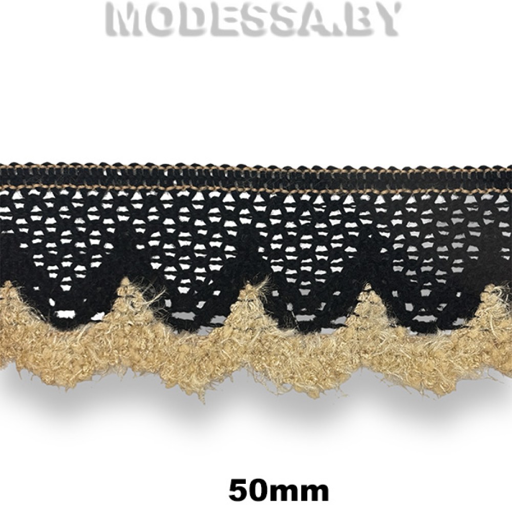 Тесьма текстильная декоративная, артикул: 458 KJ. Ширина 50мм. Используется для декоративной отделки одежды и аксессуаров.