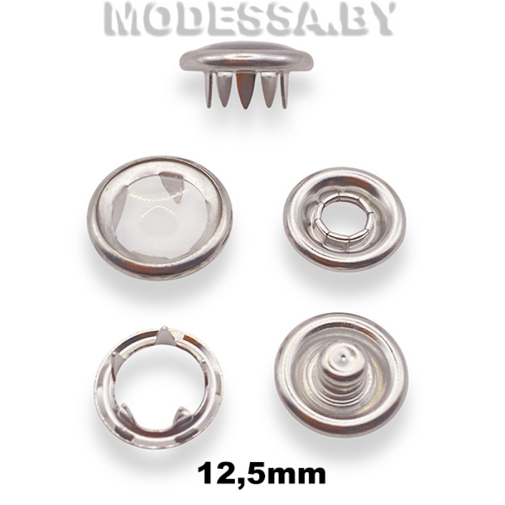 Кнопка клямерная металлическая d12.5мм, артикул: 4647. Рубашечные кнопки отличаются тем, что имеют небольшие зубчики на обратной стороне основания, которые помогают крепить кнопку к ткани и предотвращают ее смещение. Кнопки используются в установке на тонкие ткани в легкой детской, женской или мужской одежде. Подходят для рубашек, блузок и т. д. Удобно и прочно застегиваются и расстегиваются. Для установки кнопок необходим специальный пресс с насадками, однако при этом отверстия в материале не пробиваются.