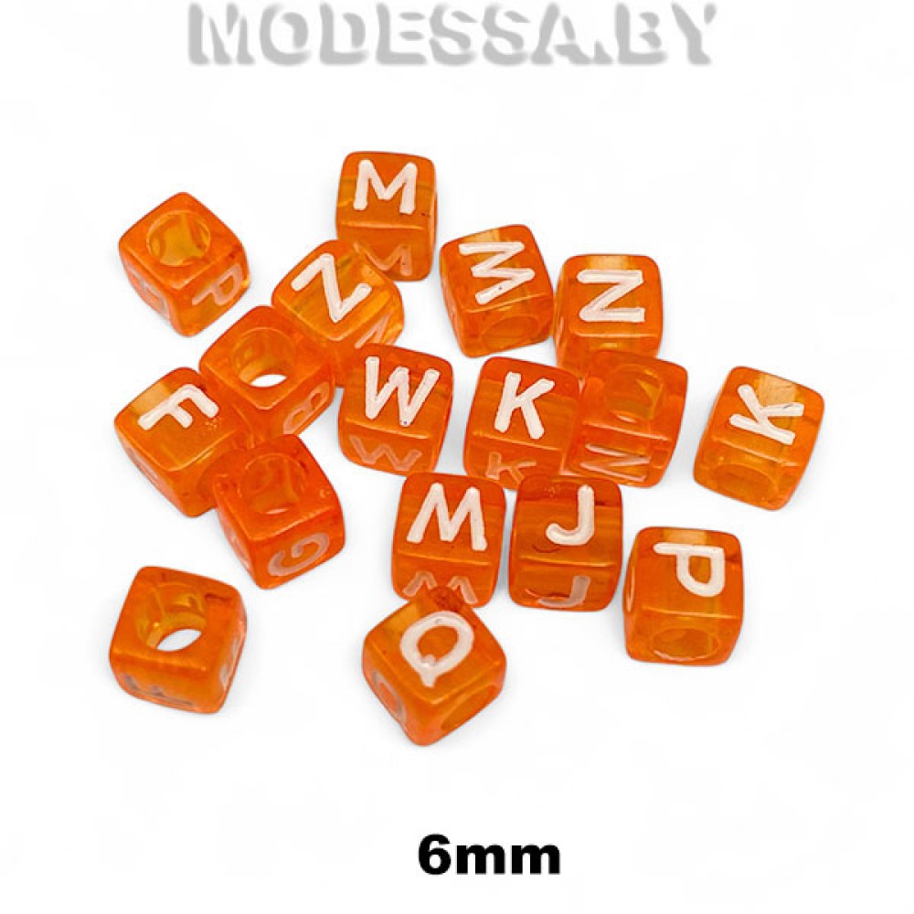 489.01 бусины декоративные пластиковые "Кубик Алфавит" Ц:1 Оранжевый 6х6мм