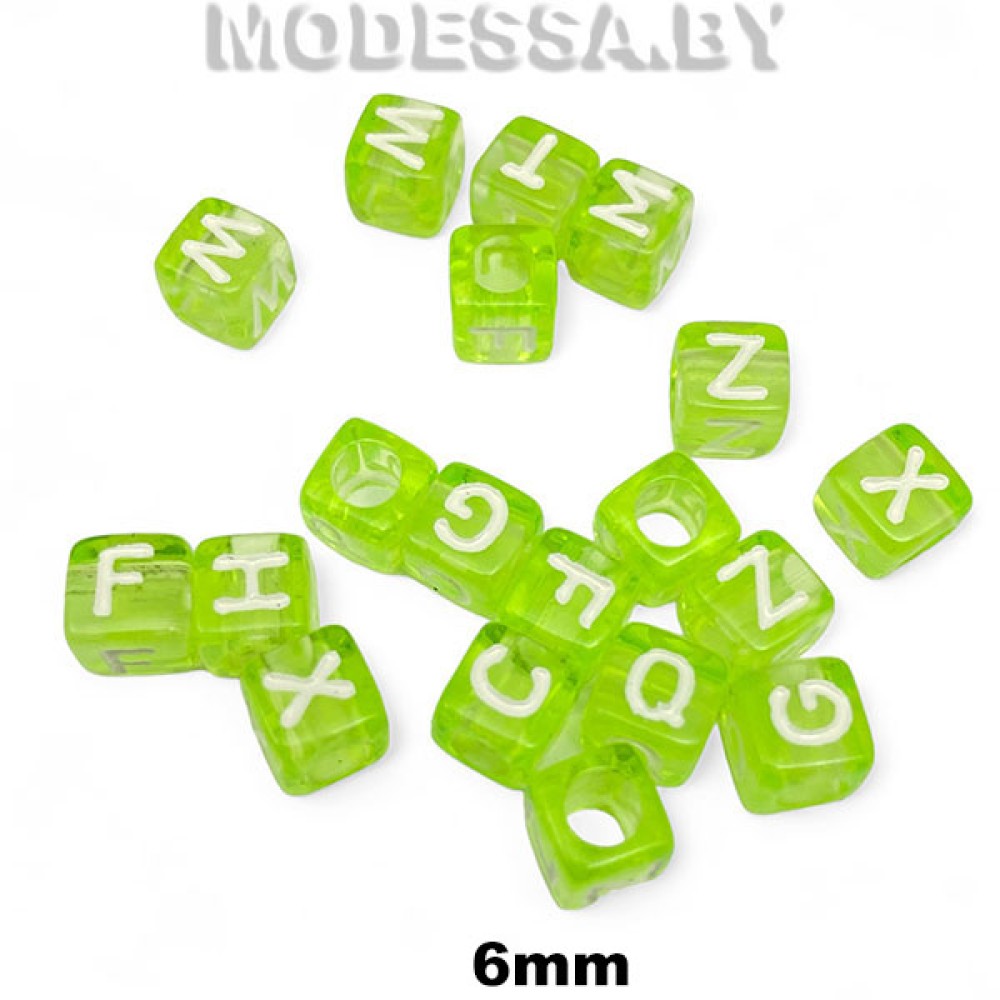 489.01 бусины декоративные пластиковые "Кубик Алфавит" Ц:2 Салатовый 6х6мм