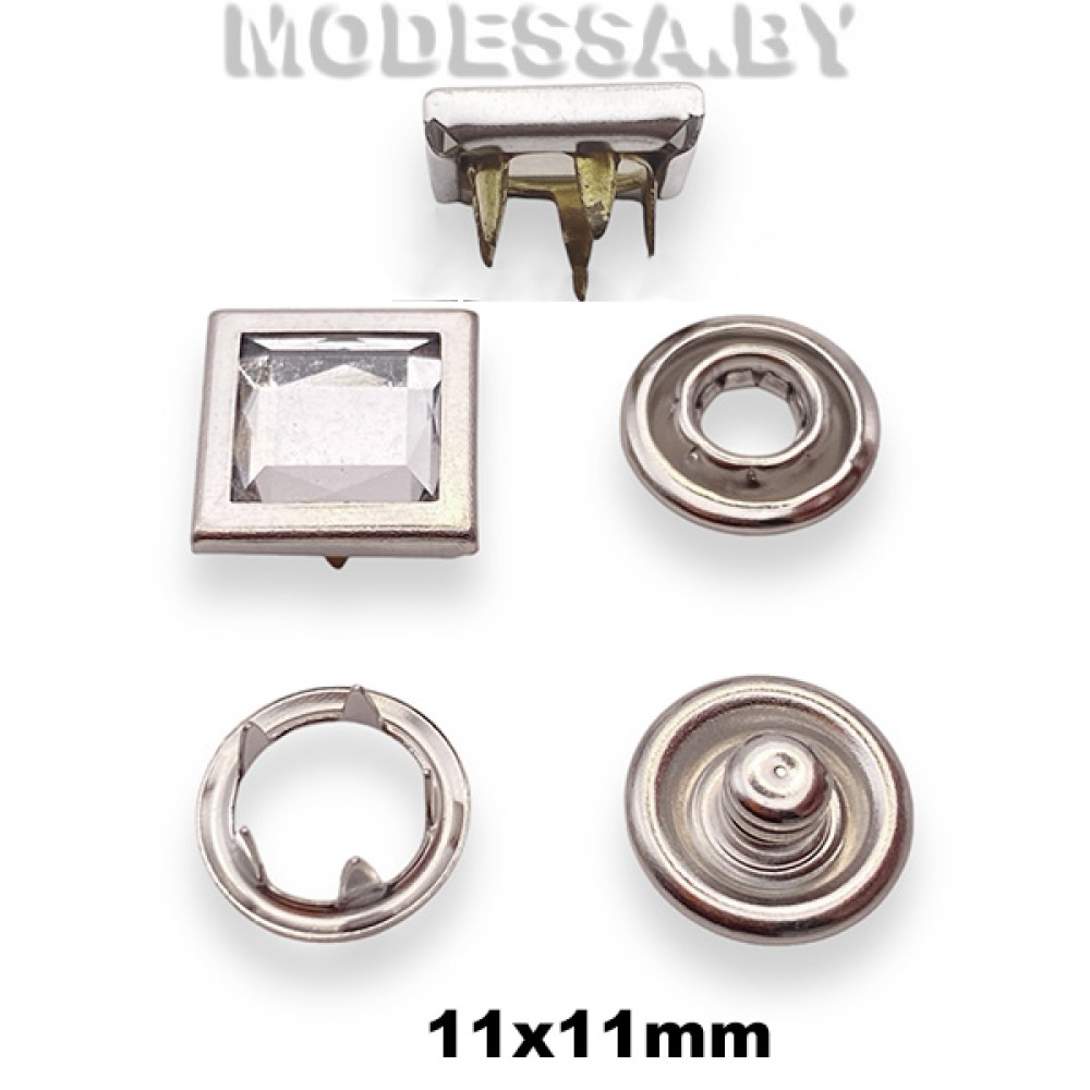 Кнопка клямерная металлическая, артикул: 5108, размер 11х11мм. Кнопки отличаются тем, что имеют небольшие зубчики на обратной стороне основания, которые помогают крепить кнопку к ткани и предотвращают ее смещение. Кнопки используются в установке на тонкие ткани в легкой детской, женской или мужской одежде. Подходят для рубашек, блузок и т. д. Удобно и прочно застегиваются и расстегиваются. Для установки кнопок необходим специальный пресс с насадками, однако при этом отверстия в материале не пробиваются.