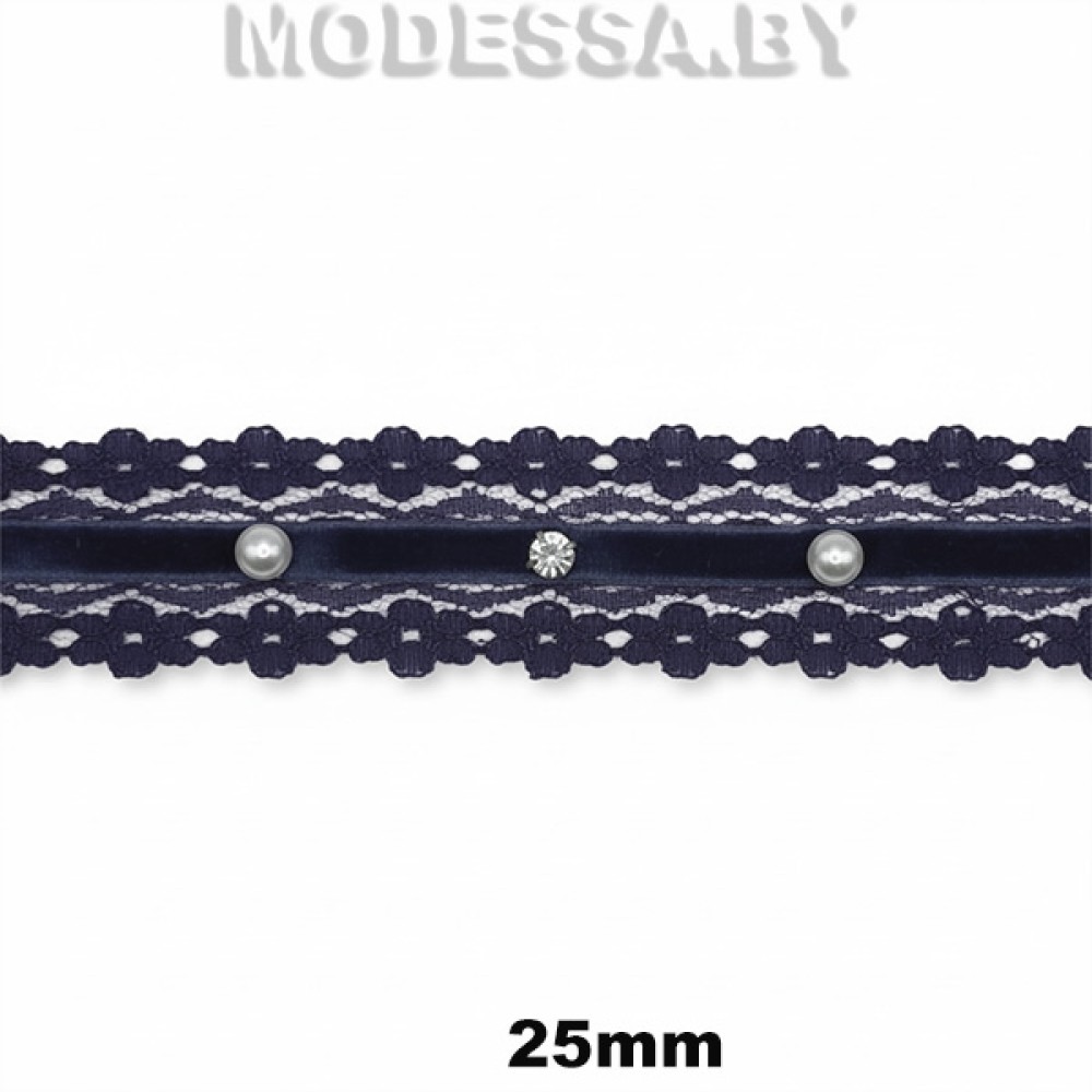 Тесьма с бархатной лентой, со стразами и бисером, артикул: 6150 CF/403 Т. Ширина 25мм. Применяется при пошиве одежды, белья и домашнего текстиля, а также используют для декора других материалов.