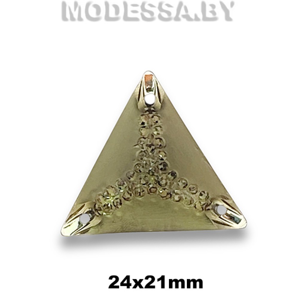 Украшение пластмассовое пришивное треугольной формы, артикул: 6270 TR 22. Размер 24х21мм. Украшение с двумя отверстиями и плоским дном используется для украшения одежды, обуви, сумок, для декорирования предметов интерьера, творческих поделок и др.