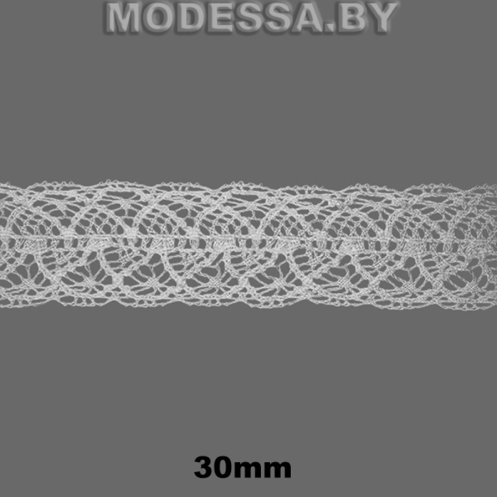 Кружево хлопковое, артикул: 7374. Ширина 30мм. Применяется при пошиве одежды, белья и домашнего текстиля, а также используют для декора других материалов.