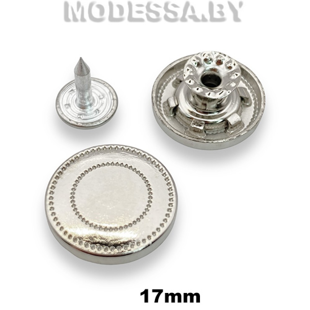Заклёпка-пуговица металлическая, на плавающей ножке, артикул: 8247 HPB. Диаметр 17мм. Джинсовые пуговицы используются при изготовлении одежды и других изделий из джинсовой ткани. Данная пуговица будет эффектно смотреться как на джинсовой одежде, так и на рюкзаке, сумке.