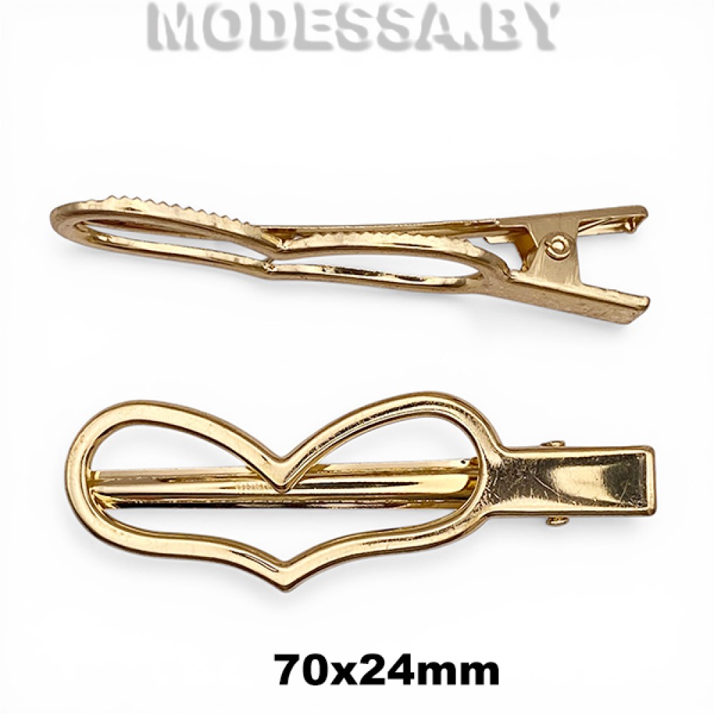 Заготовка для заколки металлическая "Сердце", артикул: 8525.42G. Размер 70х24мм. Крепление различных декоративных элементов может осуществляться при помощи клея. В качестве декора могут быть использованы бисер, бусины, полимерная глина, лента, стразы и другие элементы.