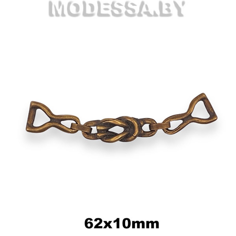Пришивное украшение металлическое цепочка, артикул: 870. Размер 62х10мм. Ширина отверстия для протяжки 5мм. Модель украшения идеально подходит для декорирования горловины блузок, рубашек или платьев, а также для декоративного оформления сумок, аксессуаров и др.